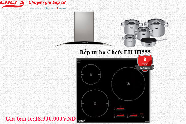 Bếp từ chefs Eh DIH 555 đang có giá niêm yết là 24.500.000 VNĐ ,nhưng với chương trình khuyến mãi bếp Cường Thịnh giành cho khách hàng chỉ với 18.300.000 Đ,bên cạnh đó khách hàng còn có thể nhận ngay 1 trong 2 phần quà vô cùng giá trị như máy hút mùi kính cong Chefs hoặc bộ nồi Chefs 5 món.
